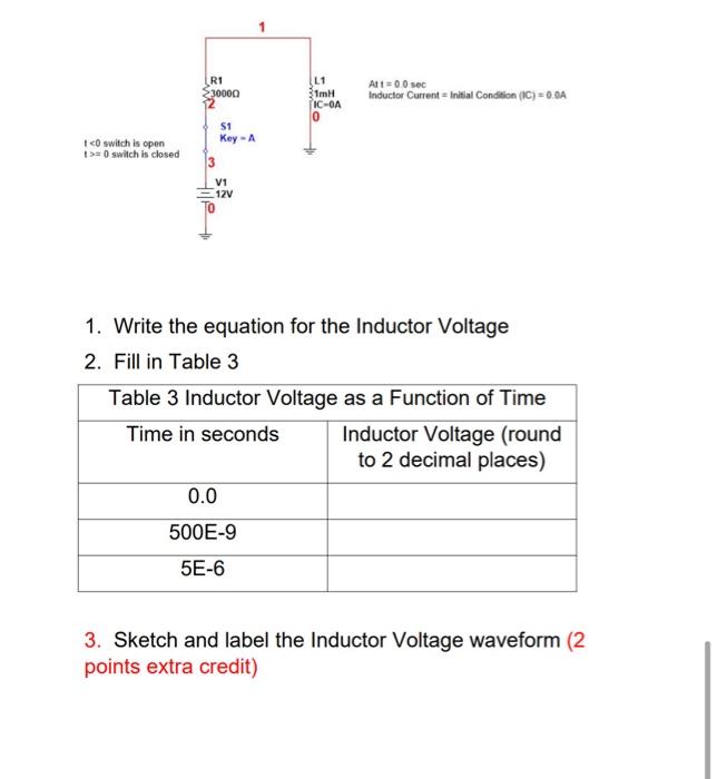 Solved 1. Write the equation for the Inductor Voltage 2.